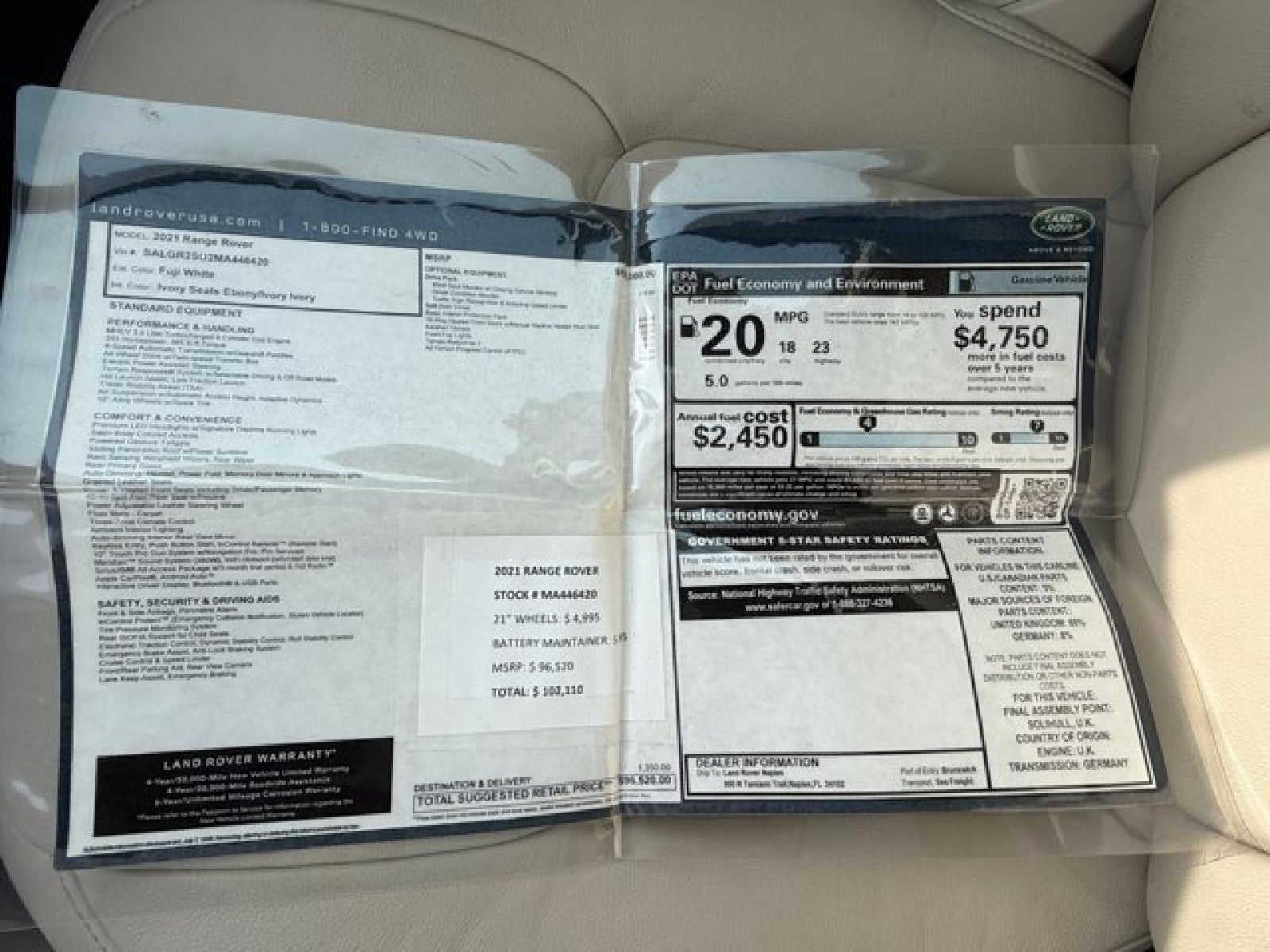 - Fuel Economy Est-Combined (MPG): 20