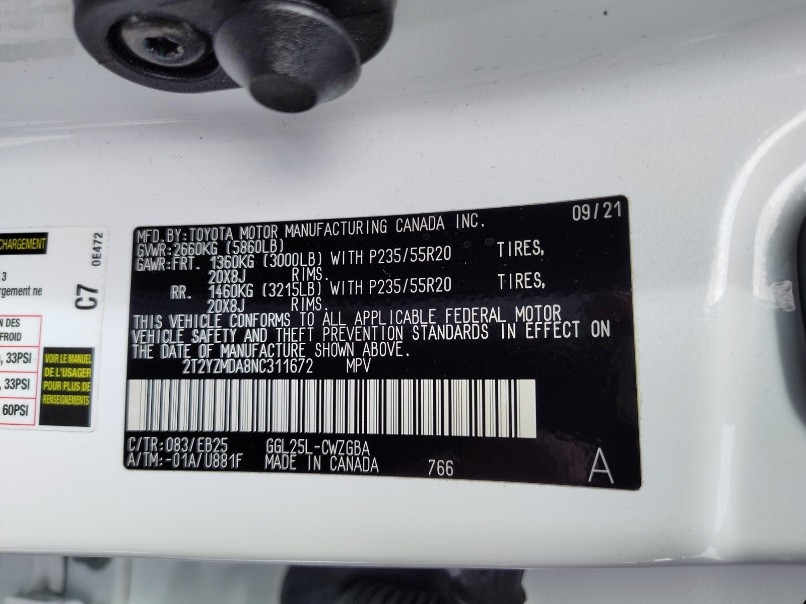 - Front Tire Size: P235/55VR20