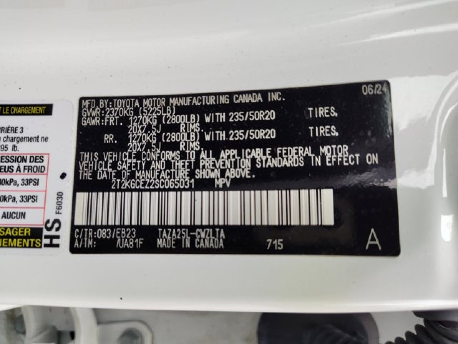 - Front Tire Size: P235/50VR20